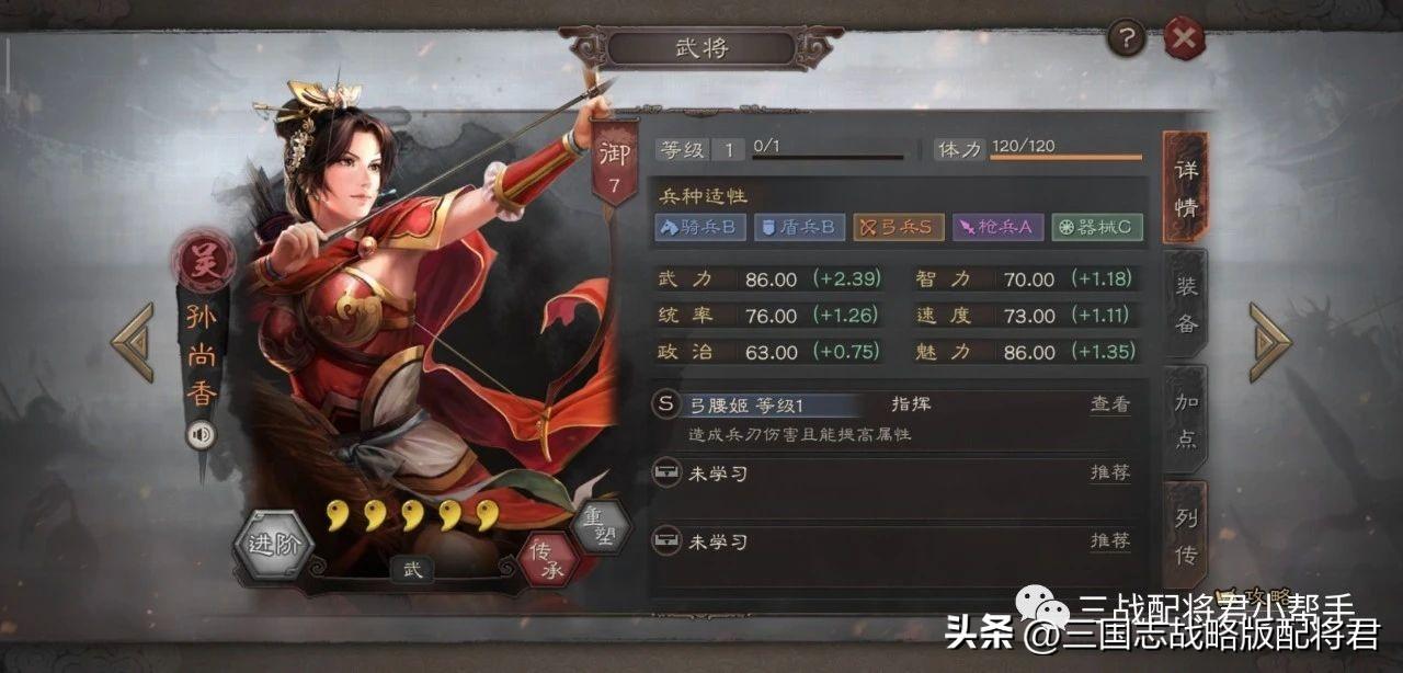 (副将)孙尚香,战法选择:裸衣血战+箕形阵