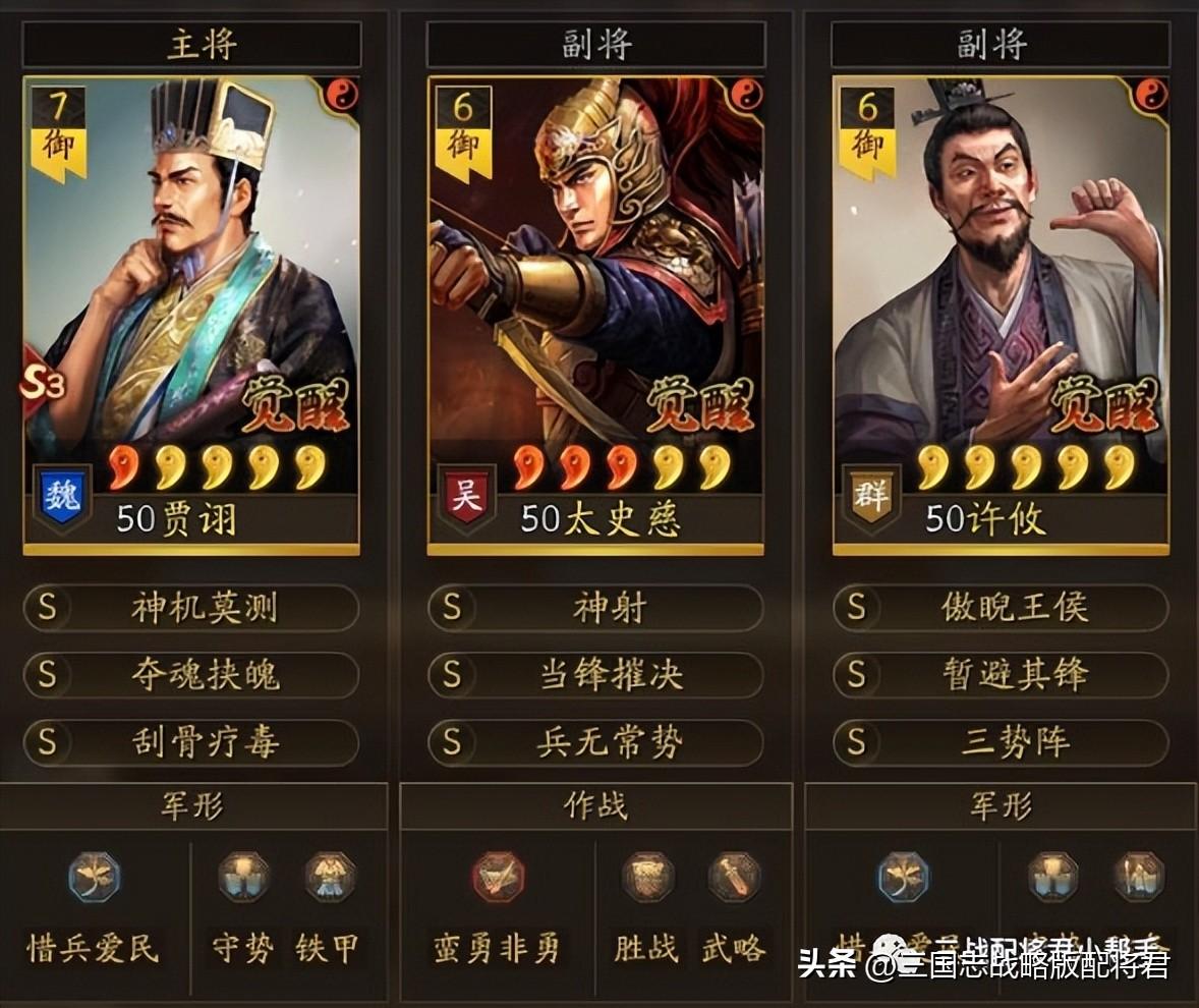 (副将)许攸,战法搭配:暂避其锋+三势阵
