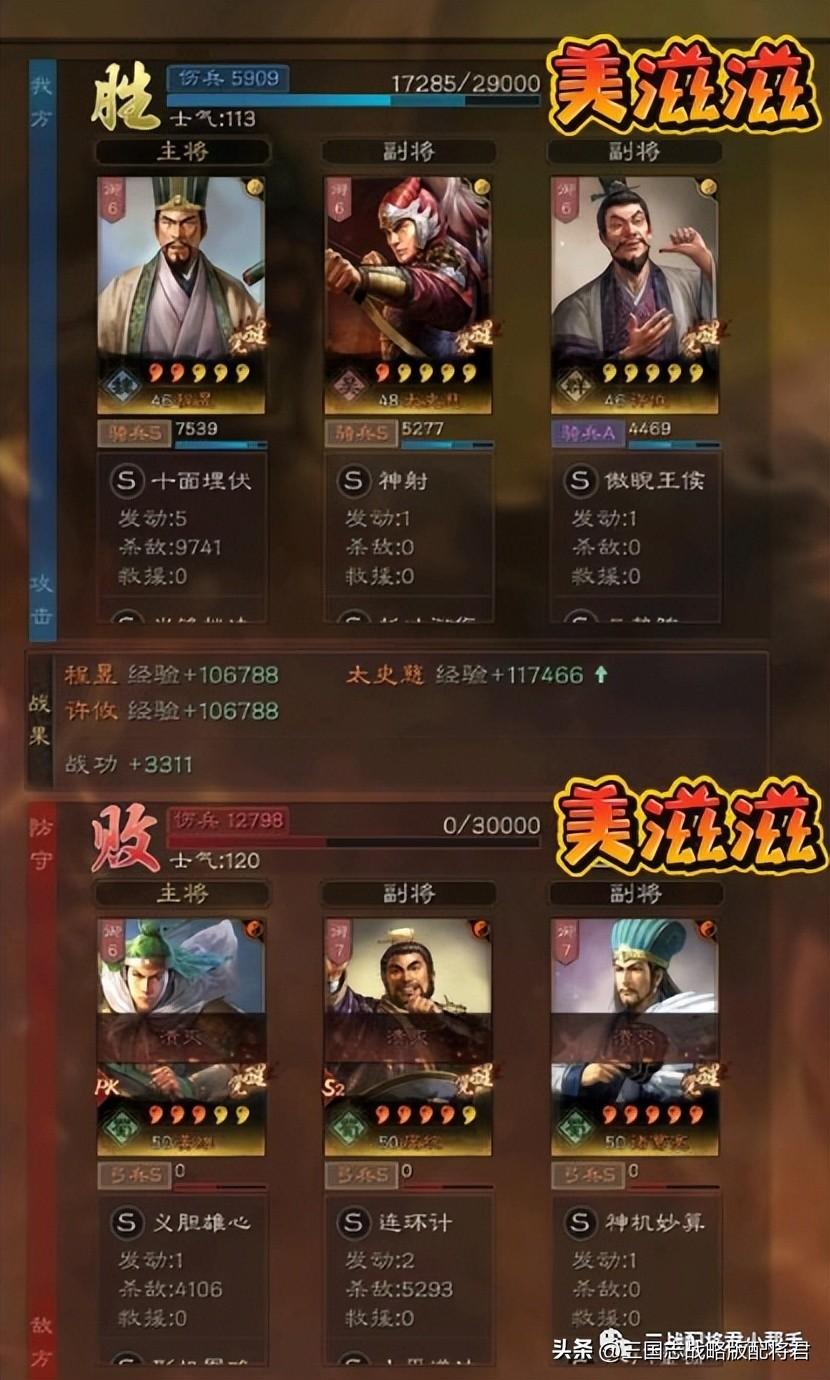 如果没贾诩的兄弟,也可以带程昱来玩,轻松拿捏了顶配肉弓,这是一套骑兵队伍,可用象兵代替暂避其锋,更容易共存!