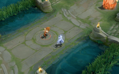技能展示:特效中融入了扫描仪、科技伞、科幻纹理等未来元素,描绘出一个来自未来机器人的战斗场面。