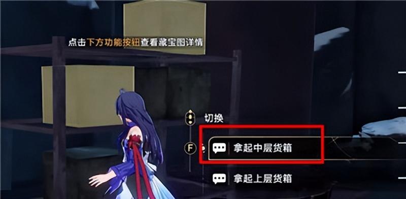 4、在门后获得【货箱便是钥匙】道具,然后前往下图货箱搬运货架上的箱子;