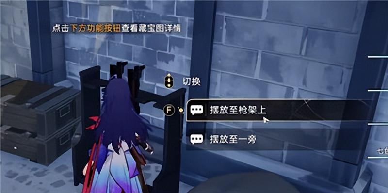 4、然后将它放置到武器架上;