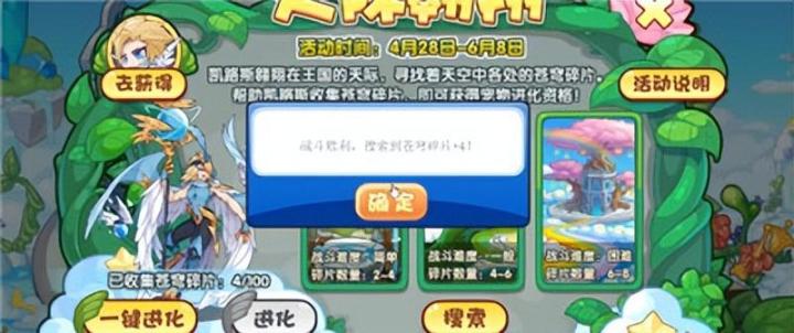 5、收集满100个苍穹碎片,就可以开启凯路斯进化资格;