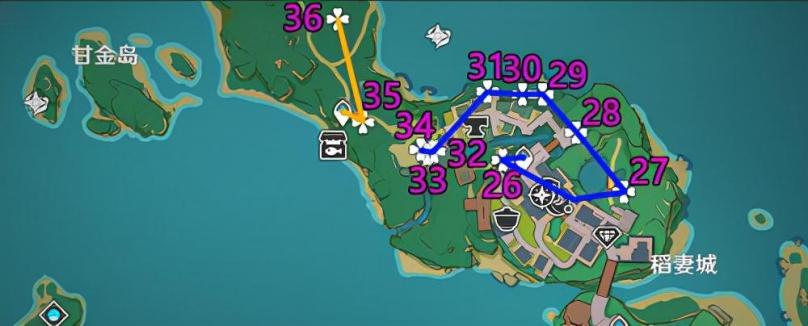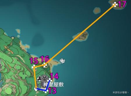 PS:这里关键;是13-14中间有个雷樱树激活可以快速到对岸拿绣球;17的话没有神里/莫娜直接放弃,不推荐开船硬(除非你就缺1-2个可以考虑)。