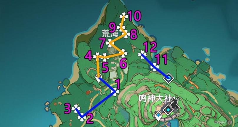 「稻妻城主城」2条路线共11个绣球: