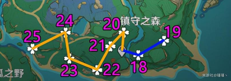 「镇守之森」2条路线共8个绣球: