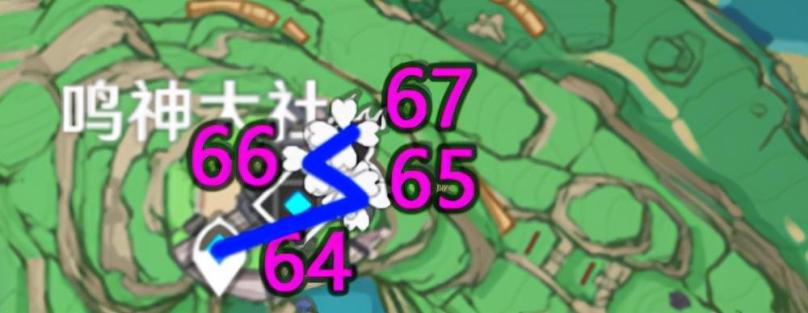 64-65是在神樱树右边2个一个在木台围栏旁边一个,一个在围栏外,66的话是在左侧的围栏旁边,67这里直接66捡完贴着墙边往下跳在石台阶旁边。
