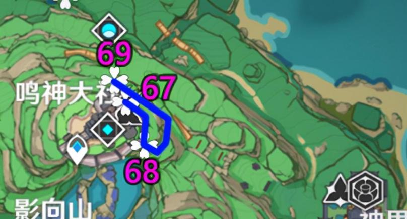 「鸣神大社神樱书-神里屋敷左上山顶」3条路线共12个: