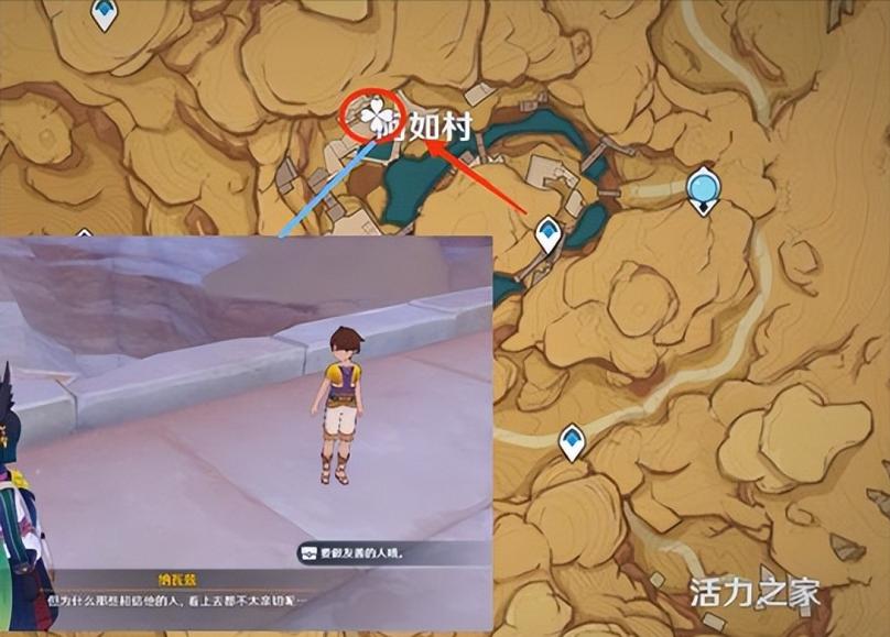 首先来到【阿如村】传送点,向图中位置飞去,找到【纳瓦玆】,