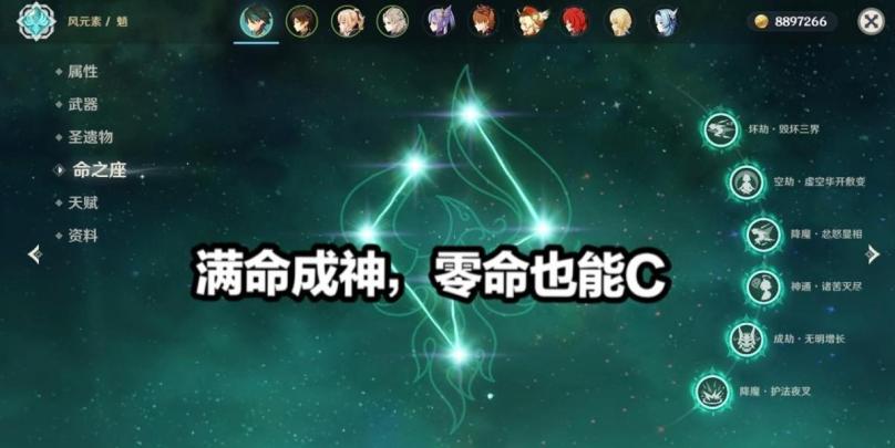 在这之前,先简单说一下魈的命之座,零命能C,一命和两命提高充能效果,满命封神,一般来说,零命魈和满命魈的天赋选择不同,零命魈可以只升E和Q技能,满命魈一定要把E技能升到10级,原因就在于满命后,魈可以不断刷新E技能,加上一命的多一次释放,各种“低空E”就出现了,因此满命魈很大程度上是依靠E技能打伤害,大招和下坠攻击反而成了锦上添花的技能,接下来说一下关于零命魈培养的误区。