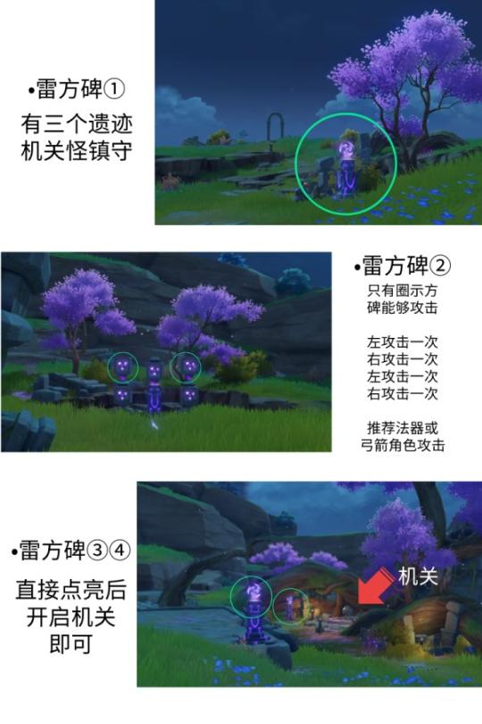 〓开启方式〓1.来到稻妻-荒海,点亮四处雷元素方碑并开启枯井第一处机关