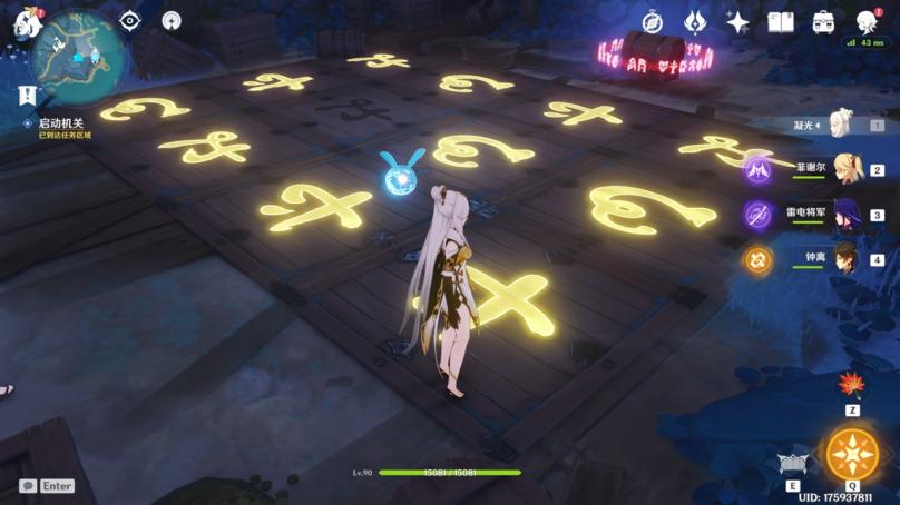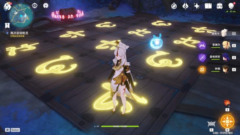 再次开启机关,左下为起点,向右依次走一个蛇形,直至终点。(下图人物为起点)