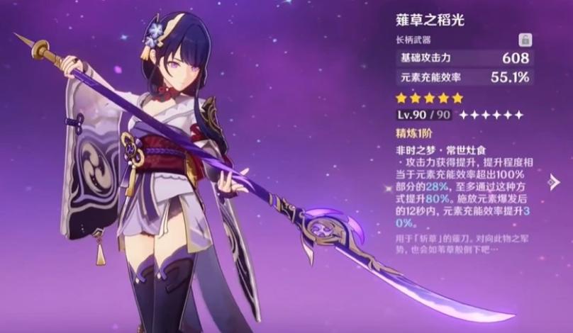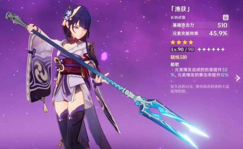 雷神的专武是薙草之稻光,在武器选择方面优先级是薙草之稻光>天空之脊>渔获>西风长枪,这里面渔获是所有人都能获得的,如果不抽专武用白嫖的精5鱼获也非常不错,所以雷神武器是不用愁的。