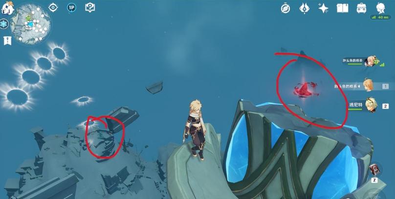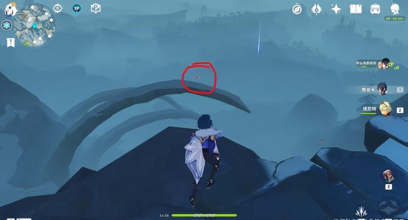 2、继续朝北方向飞,站在山上就能看见绯红玉髓在半空中。