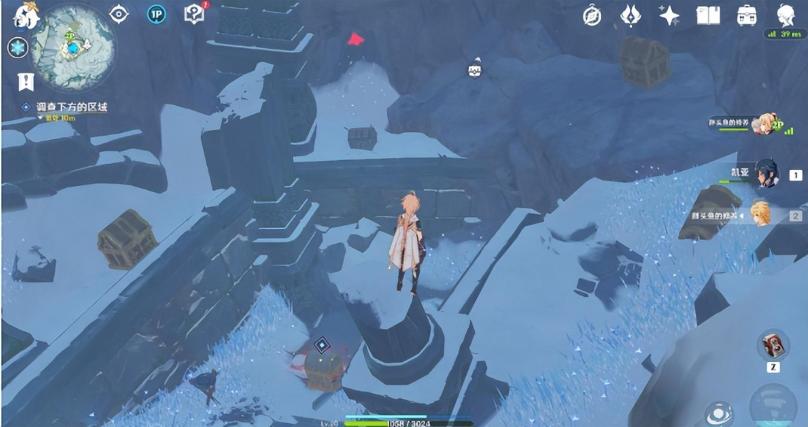 6、来到山顶后,激活风元素方碑开启风场,利用风场可以靠近寒天之钉(好像叫这个吧),爬到寒天之钉的最顶端就能看到绯红玉髓了(注意保持体力,一定不要掉下去!!!)