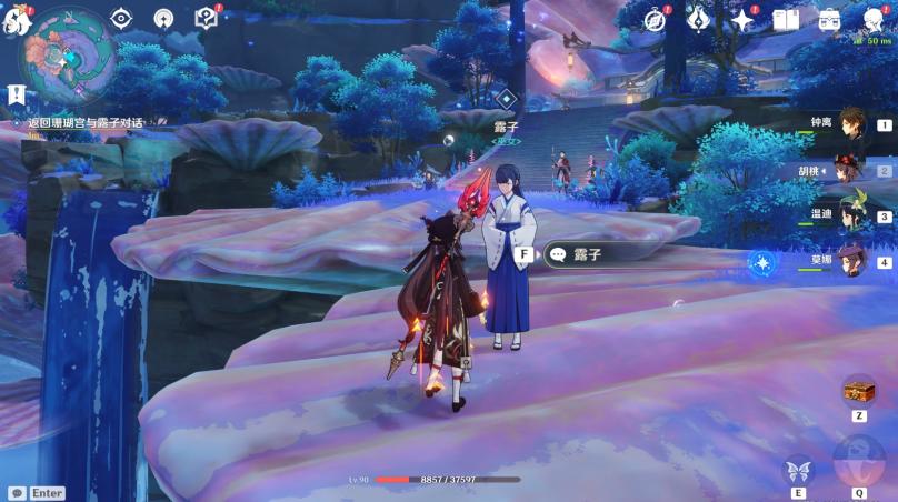 (4)破解完后,来到中间圆盘位置拿取「渊之匙」,与露子对话,任务完成获得奖励并且同时获得成就【一样的月光】10原石。