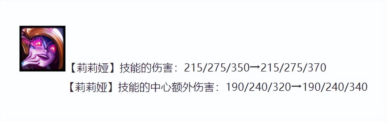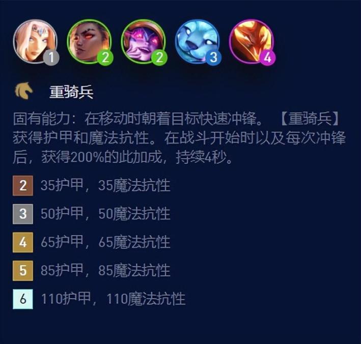 这次版本更新全面增强了三星莉莉娅的伤害,不管是技能普通伤害还是中心的额外伤害,都有长足的提升,而且最为重要的是,在12.20版本更新里面莉莉娅所属的中期羁绊也得到了加强,重骑兵提供给英雄的双抗由原本的30/45/60/75/110提升到如今的35/50/65/85/110,五人口重骑兵直接提升了10点双抗,幅度不可为不大。所以如果你再有一个金铲铲,为阵容锋线一个重骑转,直接把重骑的人口拉到5,所有英雄的肉度会得到质的跨越。