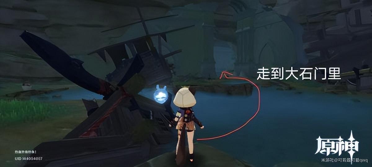 右边有一道石门需要跟随两个仙灵才能打开,如图: