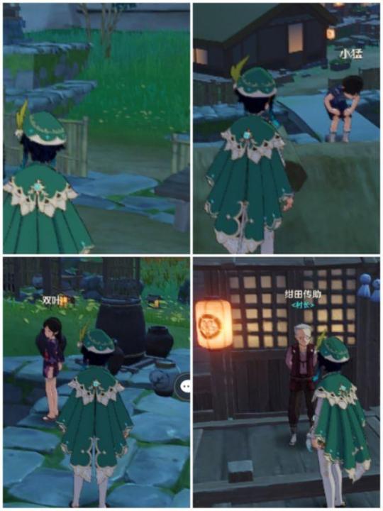 2.和村民们对话,一共有四位村们,村长,两个孩子和老奶奶(第一章图没调整好,差不多就在这个位置