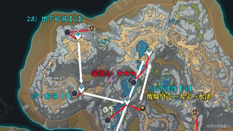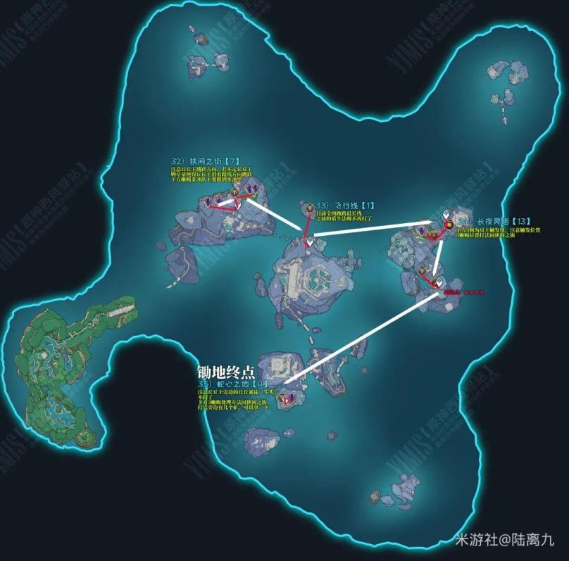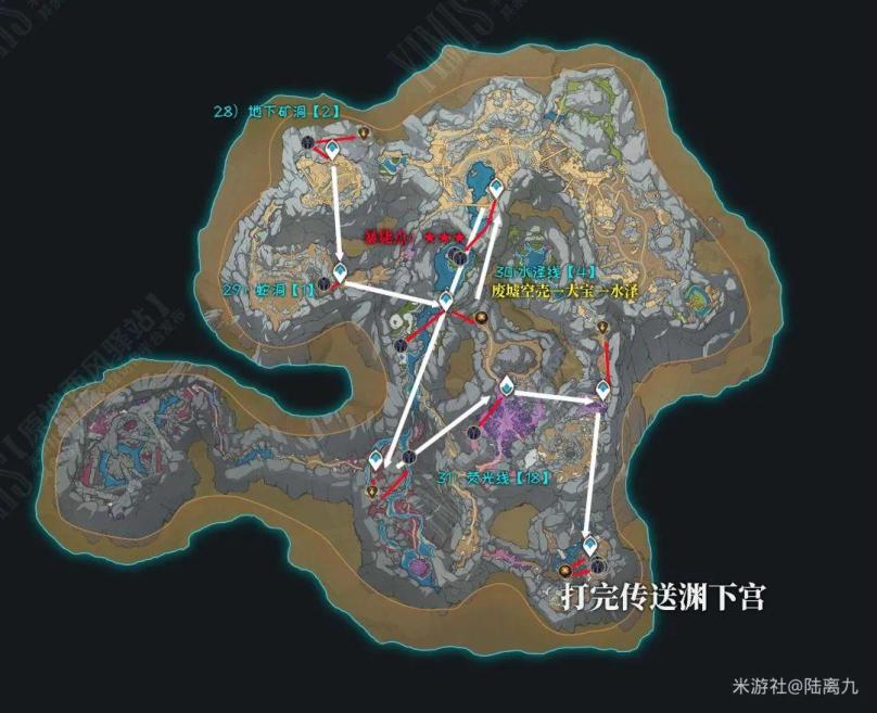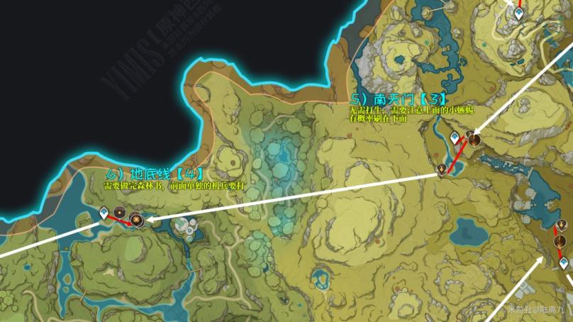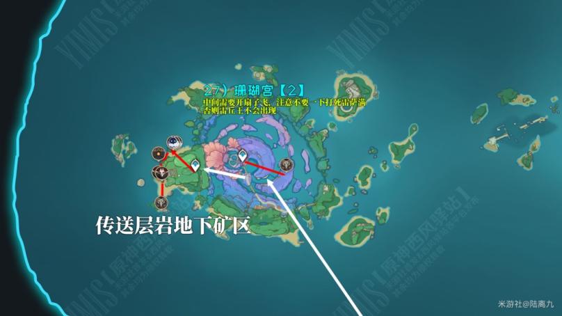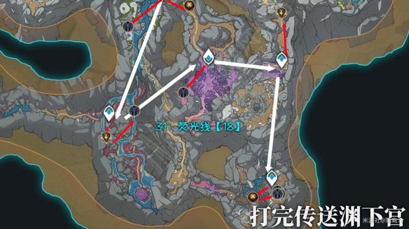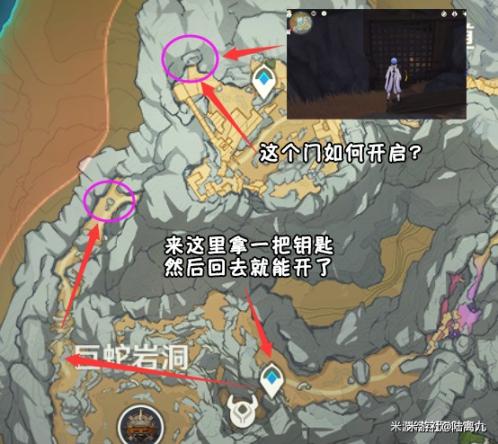 鹤观任务:完成【雾海纪行】确保鹤观传送点都能使用且不会大雾弥漫层岩地下:开启下方的铁门,钥匙位置如图 ↓↓↓