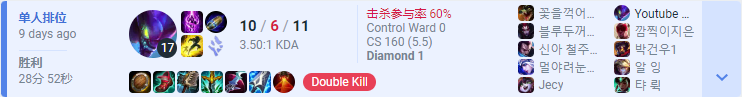 这是来自韩服钻1分段的几局排位赛,这名大神玩家使用的上单卡兹克在面对主流的战士上单时丝毫不畏惧,并且打出了刺客英雄的风采,表现非常的突出。而且在出魔宗以后不仅仅早期、中期的续航能力有保障,对于伤害也是一个提升。接下来,小凡将从各个方面给大家详细解读上单魔宗卡兹克应该怎么玩才可以玩的明白,一起来看看吧!