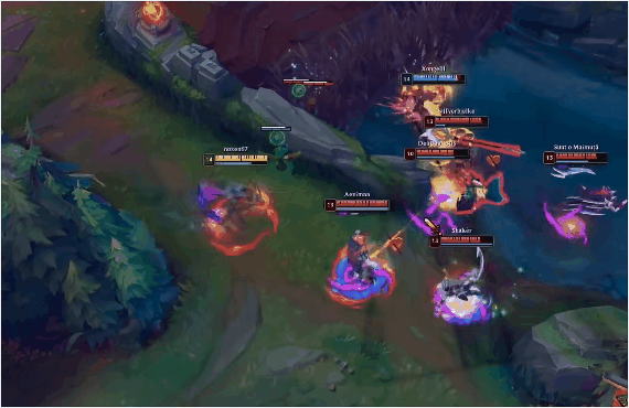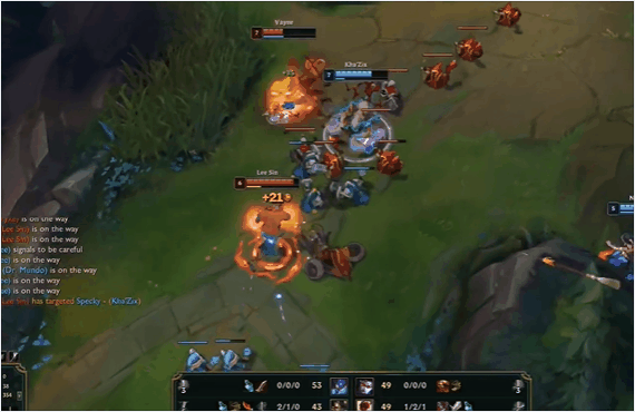 E:卡兹克的位移技能,参与击杀以后可以刷新E,可以“愈战愈勇”,收割轻松;
