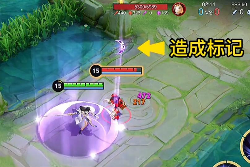 在这里要打开设置面板,把攻击距离设置为近距离,补兵键一定要关闭,尝试原地空a两下,多找一下感觉,只要你不A出第3下。这个印记差不多可以存5秒。这个印记有什么用呢?其实露娜的印记都是为大招服务的。