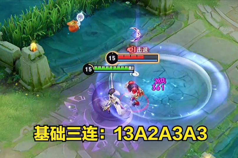 第二步练习连招口诀:A2A313A3。当敌人和我们近身的时候,普攻直接贴脸敌人,然后二技能护盾眩晕给目标施加印记,再接一个普攻,接下来三技能穿过敌人,回头放一技能标记敌人,大招穿过敌人接平A打出印记,最后大招离场或者追击都是可以的。这就是露娜最经典的月光剑,练习10分钟,直到熟练地快速打出一套为止。
