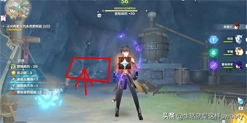 3、接着我们在前面位置的岩石是可以往上面移动的,我们进入之后就可以获得华丽宝箱一个,然后来到火药库门口就可以顺利的打开铁门,进入获得炮弹提交任务即可;