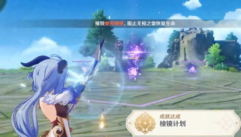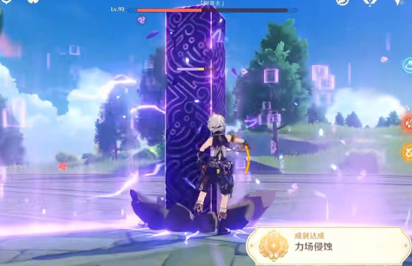 2.当无相之雷召唤一圈雷柱子,我们用“火系”或“冰系”角色打碎其中一个,即可获得成就「力场侵蚀」