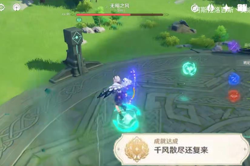 2.利用风场,收集10个元素晶球,即可获得「千风散尽还复来」如果一次收不完10个,先不击败,等它释放第二次元素晶球