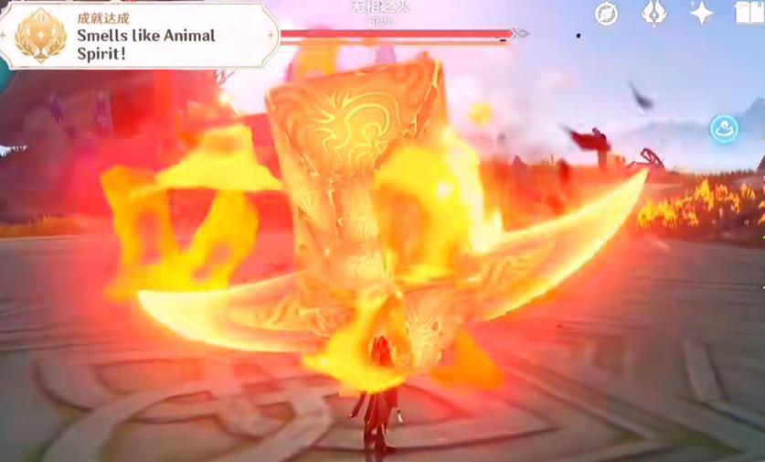 2.被无相之火拟态“牛角”“拳头”“爆开球”三连击中,之后将它击败,即可获得「Smells like Animal Spirit!」