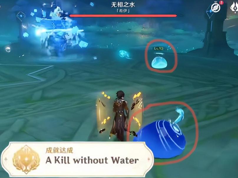 2.无相之水会分出两只史莱姆(浅色、深色),在不击败这俩水史莱姆的情况下,击败无相之水,获得成就「A kill without Water」