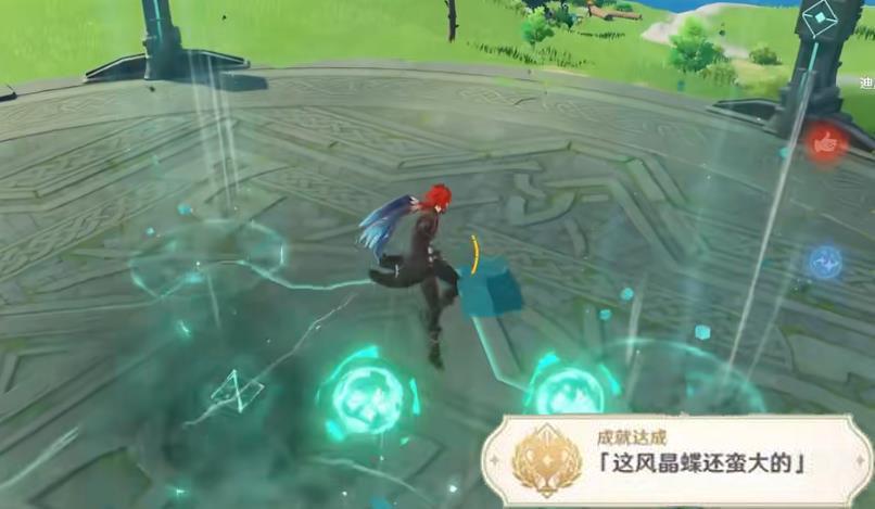 3.无相之风第一次击败后,会出现四个元素晶核,一次性吃光,获得成就「这风晶蝶还蛮大的」