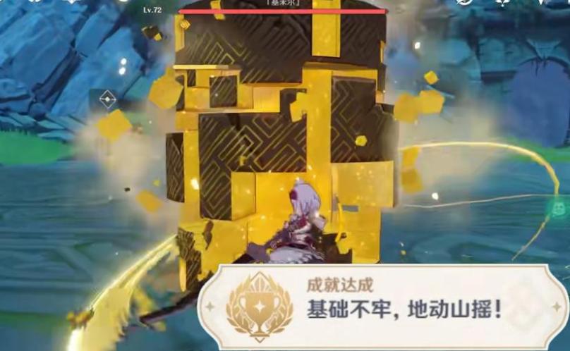 2.建议用大剑角色,打碎三个柱子,让核心落地。即可获得「基础不牢,地动山摇! 」