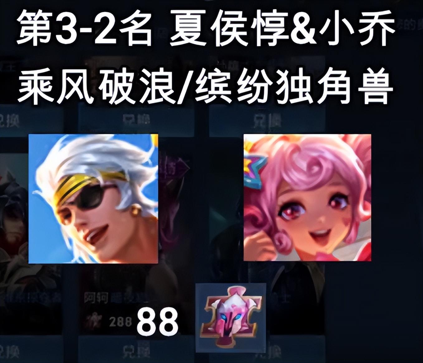 虽然夏侯惇、小乔两个英雄我几乎都是全皮(荣耀典藏皮肤没有),但我打排位和巅峰时,还是用缤纷独角兽和乘风破浪比较多。