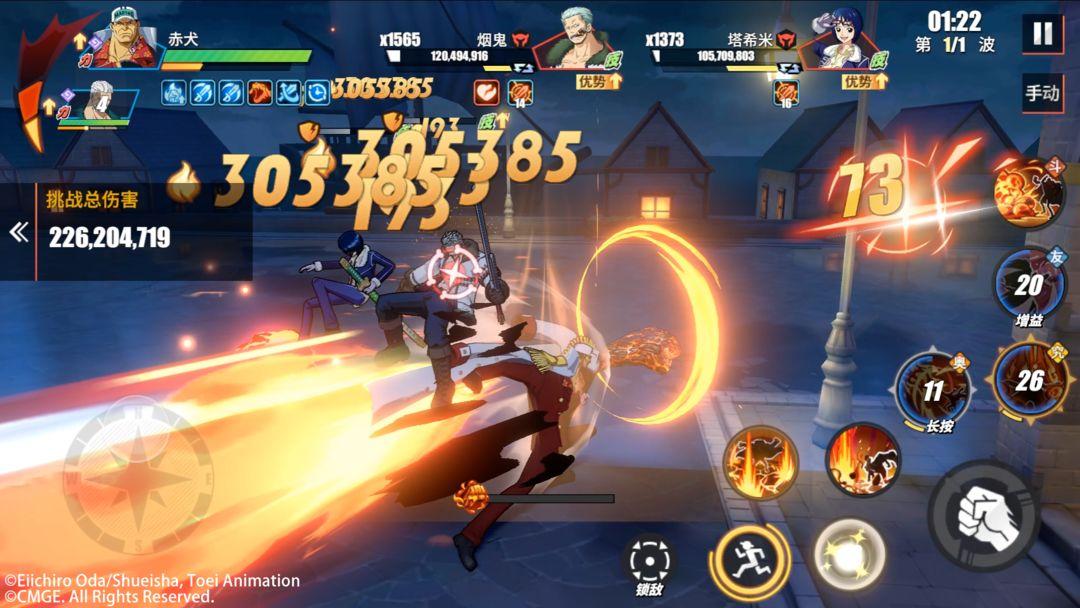 赤犬烟鬼组合要点:开局聚怪打怒出奥义切赤犬进行输出,核心是最大程度地保证特性buff挂上和最大化安排主C技能输出循环。全程烟鬼和赤犬各打3轮伤害,新世界烟鬼开局用时2S,其余每轮用时7-8S,赤犬每轮用时分别为27S,25S和22S。