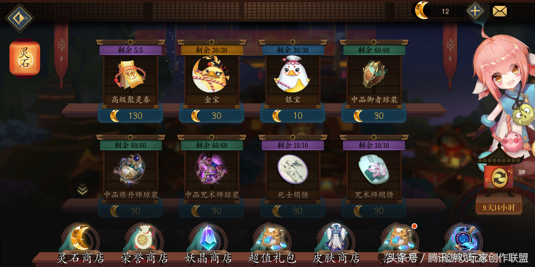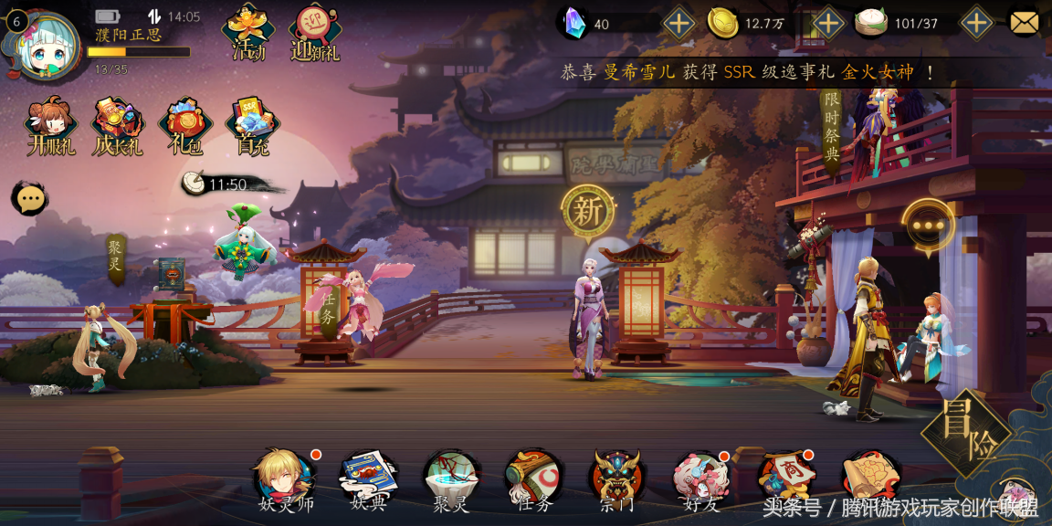 右上角则是你的财产状况,包括妖晶、金币以及剩余体力,最侧边是邮件选项。