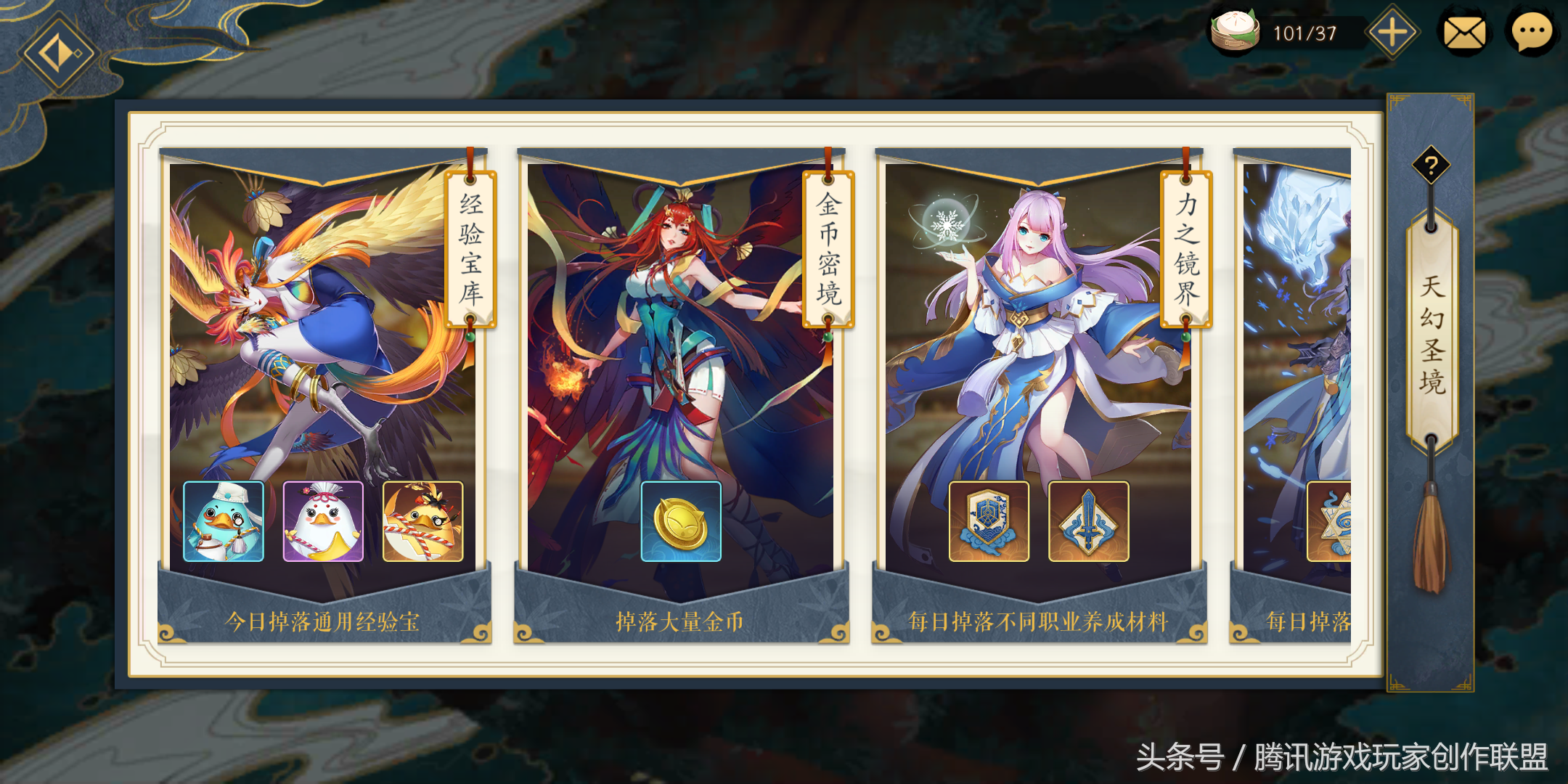 游戏的主要副本部分,经验、金币、职业养成材料等丰富资源助力养成强大妖灵师。
