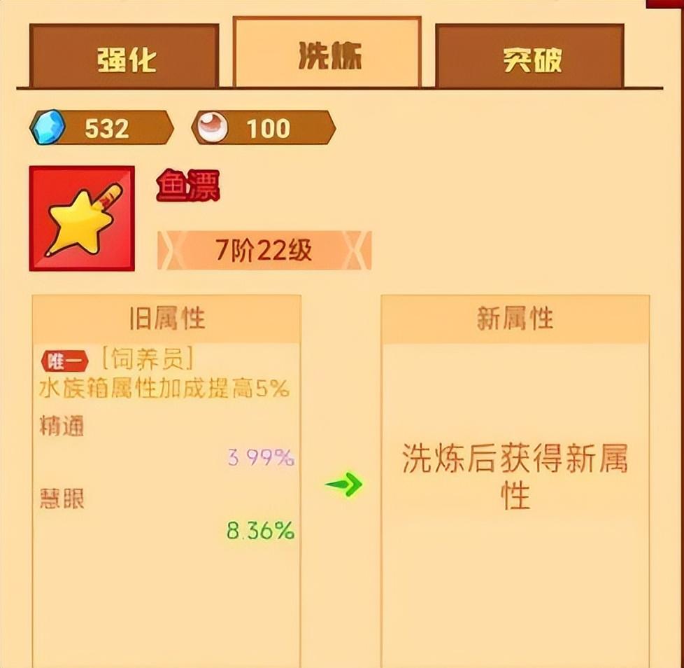 对于零氪微氪玩家来说,渔具洗炼一步可以视情况省略,洗炼要投入大量钻石,对于零氪微氪来说投入和收入是不成正比的。