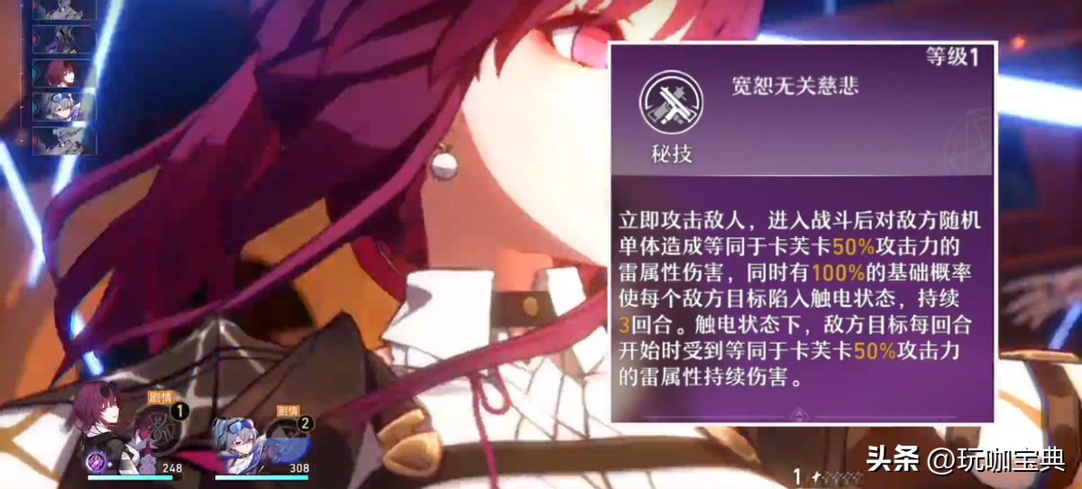 同时这个引爆持续伤害的效果不仅限于一种,理论上敌方可以最多挂出8种的持续伤害,而如果卡芙卡在这时释放引爆,那么8次伤害会全部提前结算,相当于让8位角色提前出手一次。当然实战中正常应该是2-3种,不过这个效果也已经很强了,约等于全队提前出手一次。