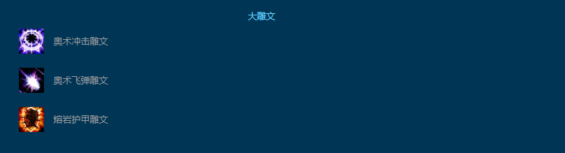 奥术冲击雕文:提高奥术冲击伤害3%;