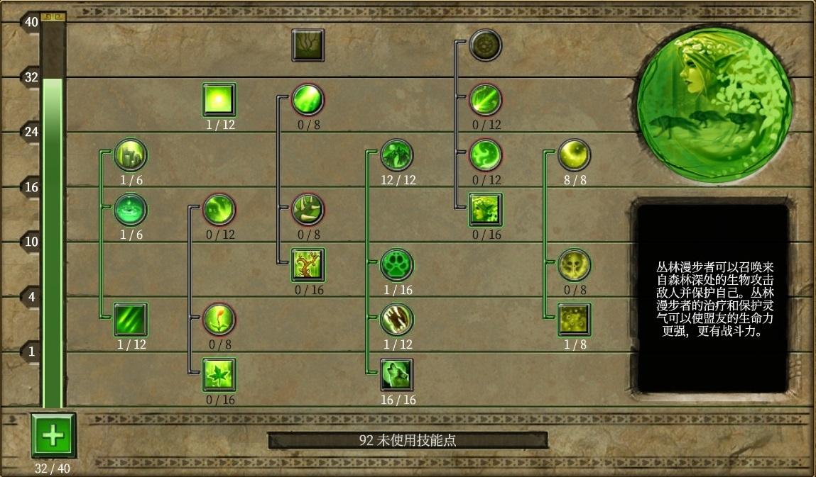1.自然开局,舒适又安逸。2级加2级专精条1级狼,3级加2级专精条1级橡木之心,然后直接把狼的本体加满,再开始攀升专精条,专精条24级从团队之力向下加点,狼加到满+1+15+满。然后全力加防御专精条,直奔40级出方阵,过路可以选择点盔甲掌握、战斗警觉。再之后补瘟疫和自然专精条,人物等级43级之前达到以下技能状态即可。