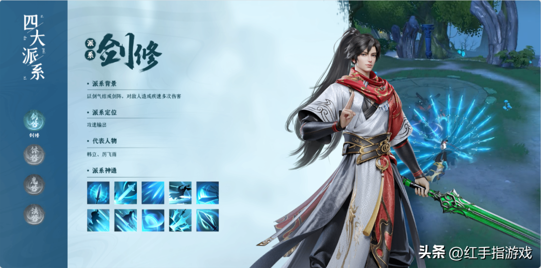 剑修:技能输出高,伤害高,血厚耐抗,输出最高,但物理伤害也是最高的。不过,剑修不能打到对方,只能靠自身技能打伤害。