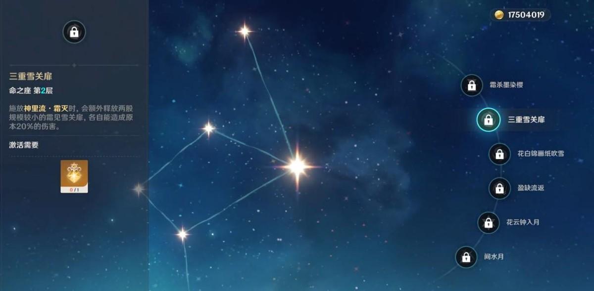 二命,大招增加两股冰风暴,只要挂火的频率够高,神里绫华的大招就可以打融化反应。