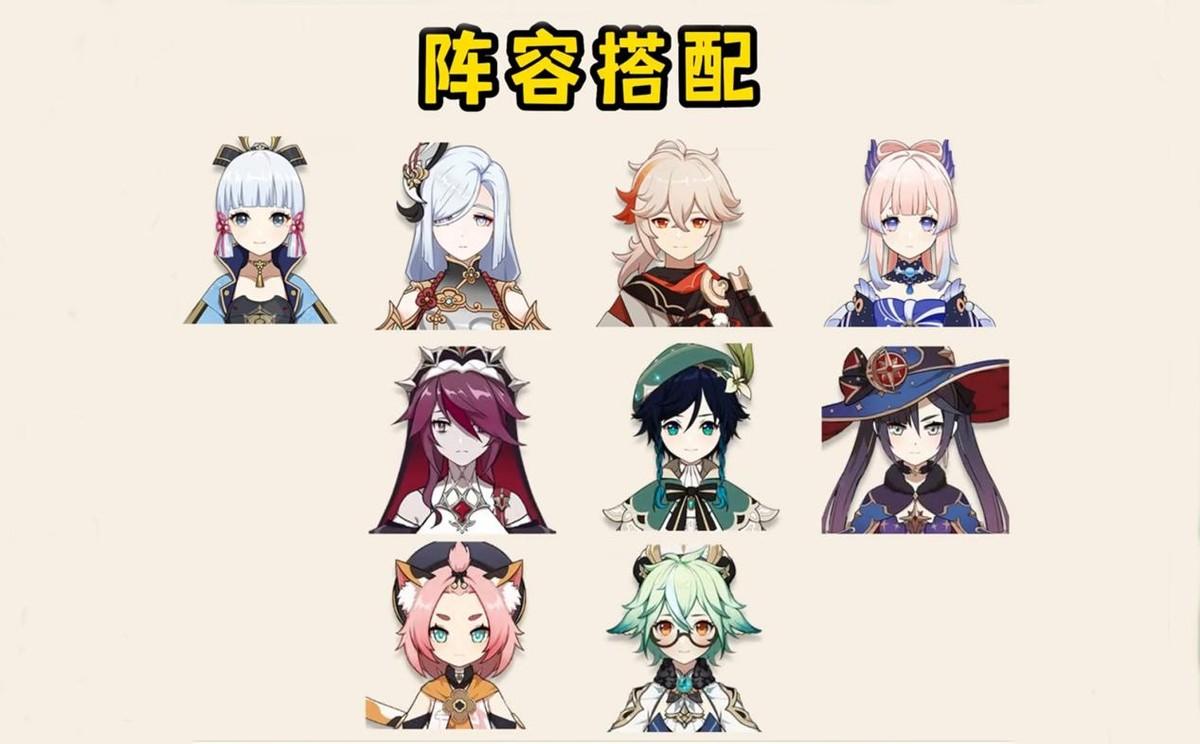 神里绫华+冰系组双冰+水系挂水打永冻+加上风系增伤聚怪,目前最佳的组合是神鹤万心,如果凑不齐的话,可以用神罗万心,神莫万猫,没有万叶也可以换成温迪或砂糖。