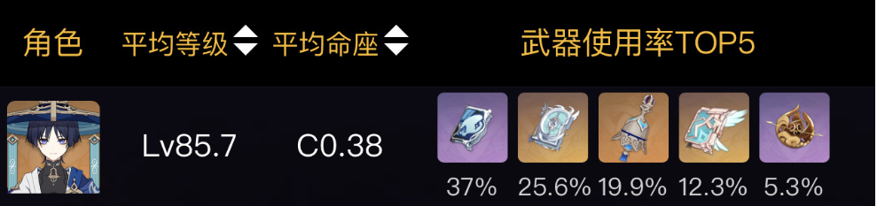 从数据来看,给散兵使用流浪乐章的玩家还是最多的,毕竟六星武器体验卡。