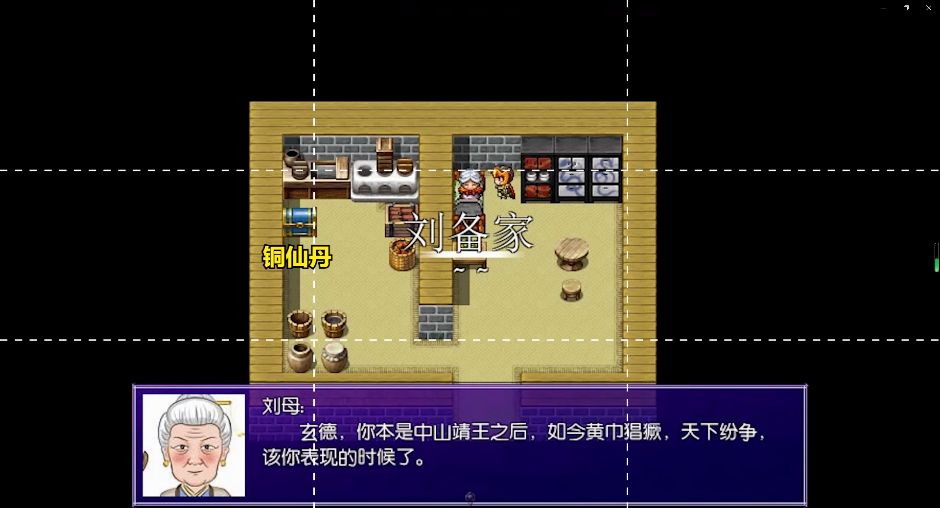 游戏开始,刘备交谈刘母,得到主线任务,击退黄巾,找叔父刘子敬赞助物资。刘母家中箱子里边有铜仙丹。获得主线任务之后,出门就能见到关羽张飞,对话后,关张加入。最强创业团队就此诞生。