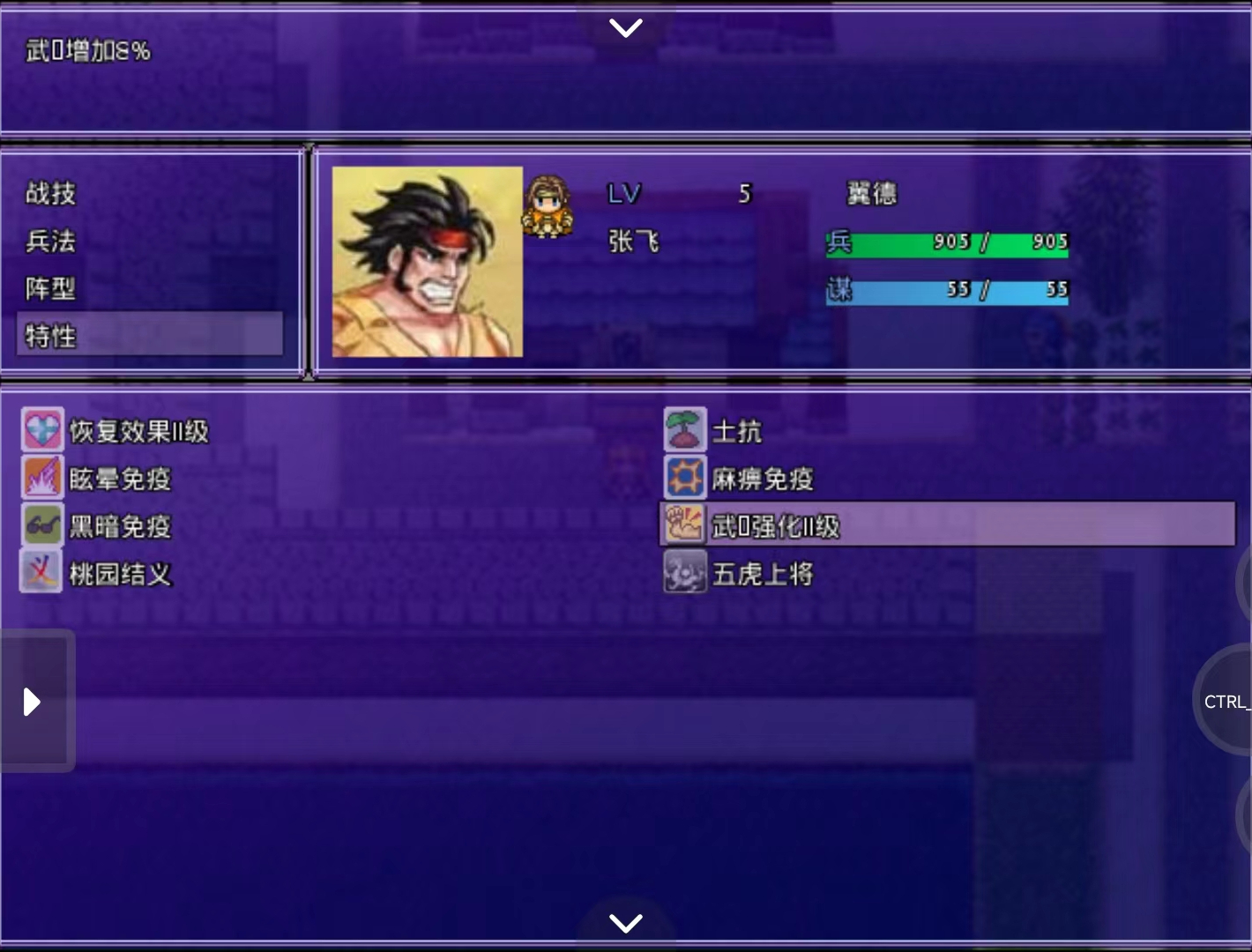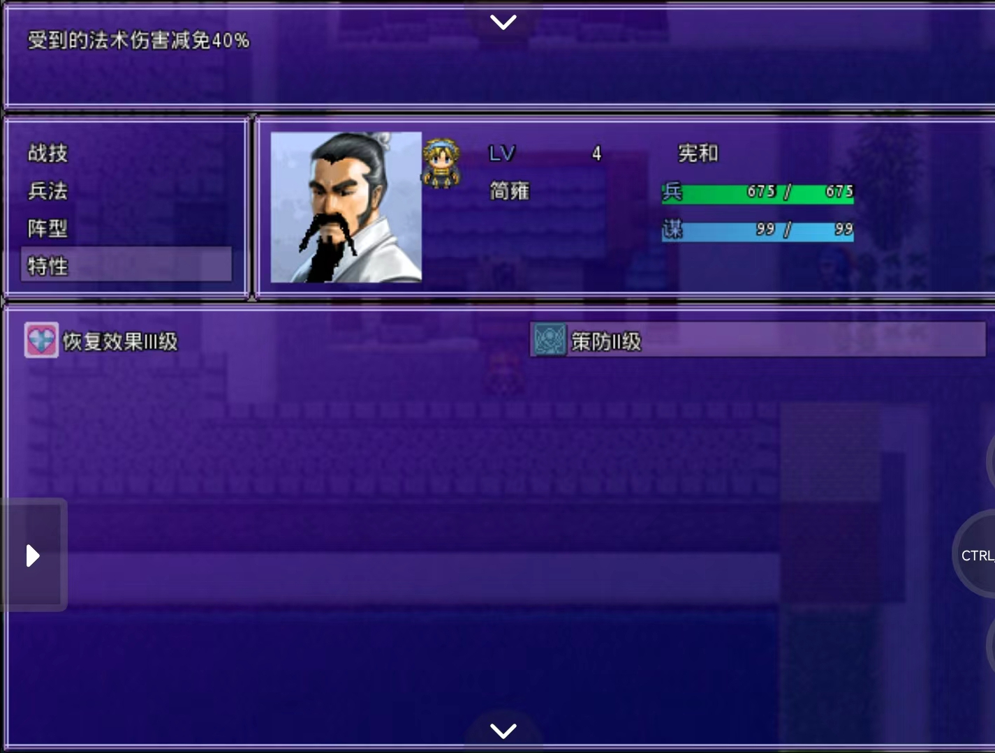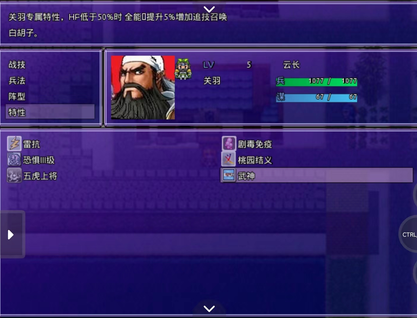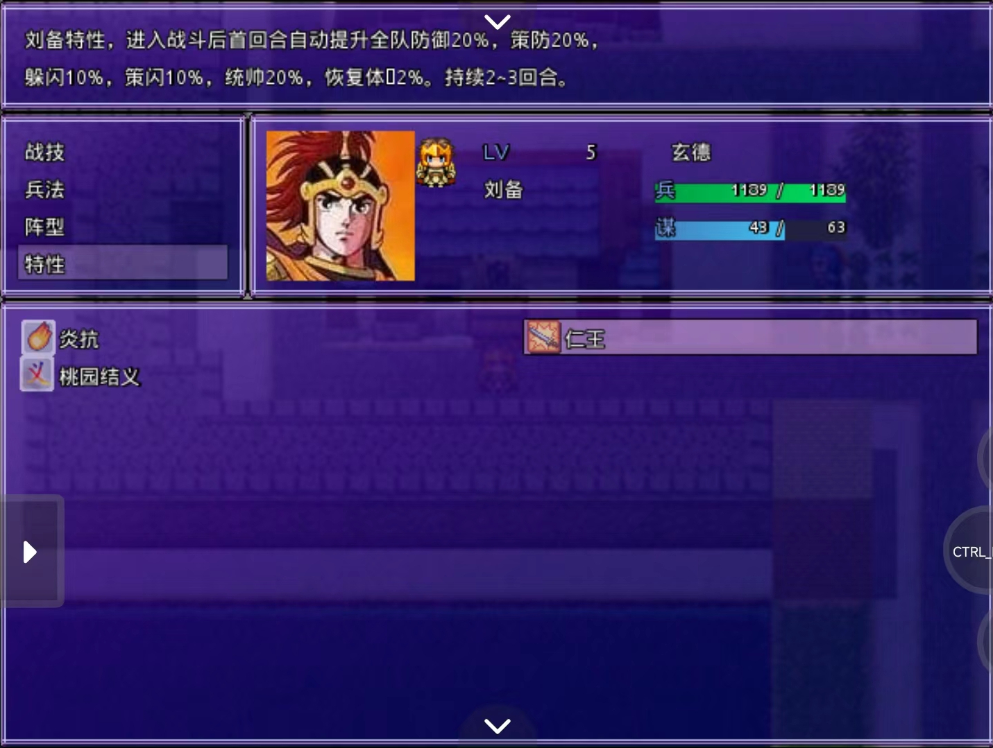 这里重点注意一下,本作中普通攻击伤害比较小,战技跟兵法伤害较高,武将一般是战技,军师一般是兵法伤害(正常加入的二者都有,只是伤害差别)。本人建议,可以先在城外刷级-至少3级以上,学会战技之后会轻松很多。(ps:不刷也打的过,只是时间比较长而已)