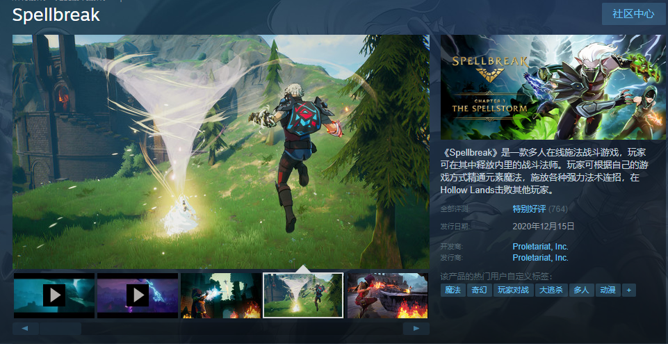 12月15日一款名为《Spellbreak》在Steam商城中发行,游戏本体免费但付费内购,但基本上都是些饰品等外观装饰,不会对游戏的公平性产生影响。这款游戏最早发行于Epic平台,但由于平台用户基数的问题导致《Spellbreak》并没有受到太多的关注。当这款游戏出现在Steam首页之后,相信不少玩家都和小编一样对这个以"魔法吃鸡"为主要卖点的游戏产生了兴趣。